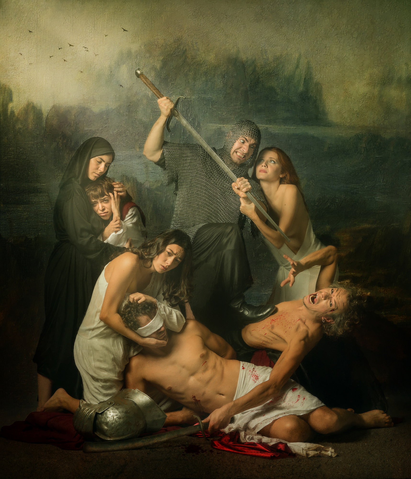 Pietà is dear to me. I wanted to re-engage a sacred archetype through contemporary portraiture—grief as a universal, not historical, condition. We built it with real drapery, restrained palette, and meticulous hands placement. The light is feathered from above-left, with negative fill to keep the values solemn. There’s a quiet halo suggested by separation, not a graphic line. On set, we let silence do the directing. What moved me most was the tenderness between the models when the camera wasn’t clicking—that “between gestures” truth.